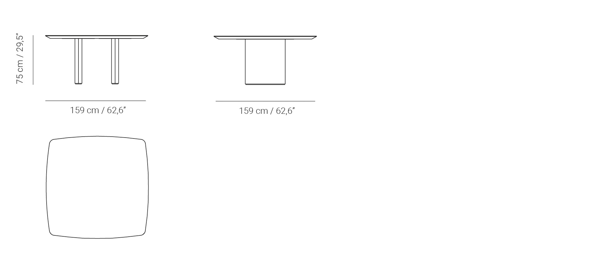 The Wind 159x159 square dining table by Jacobo Ventura combines geometry and sophistication in perfect symmetry. Its porcelain top, available in many models, offers strength, elegance, and a sleek contemporary look suited to both modern homes and high-end contract spaces.