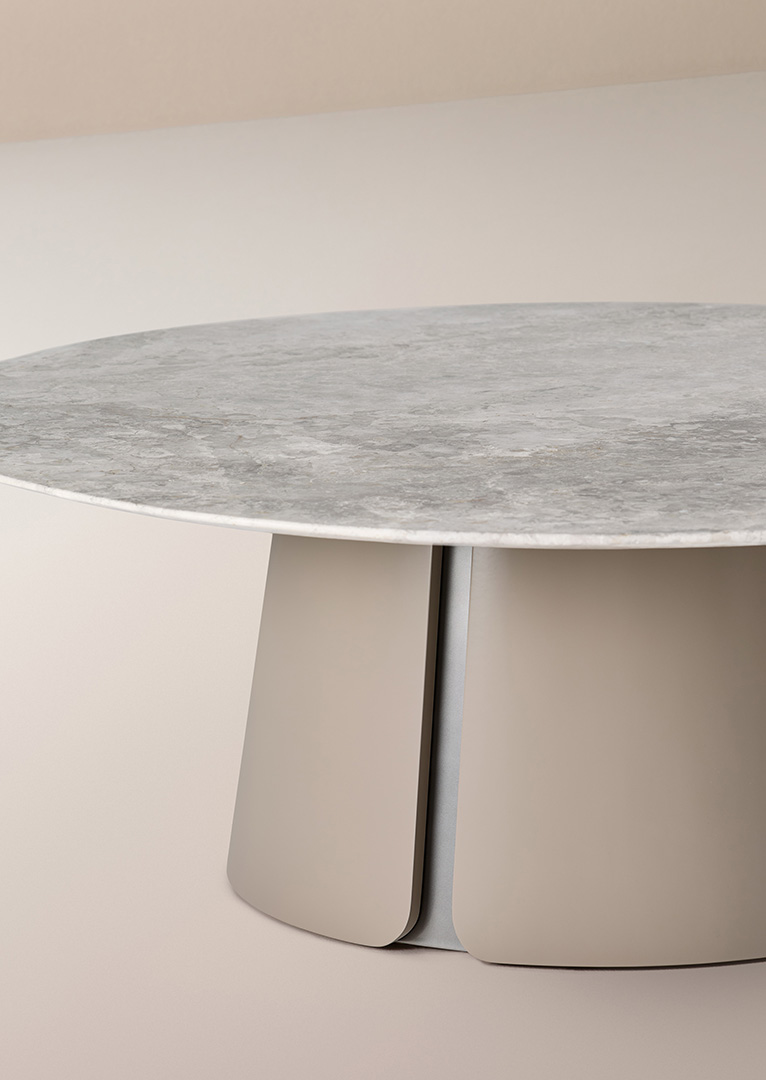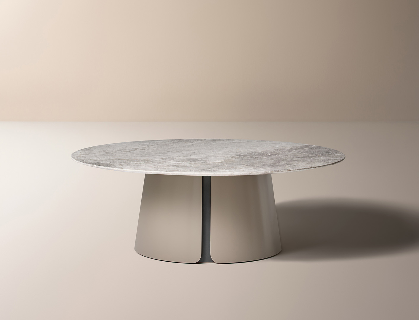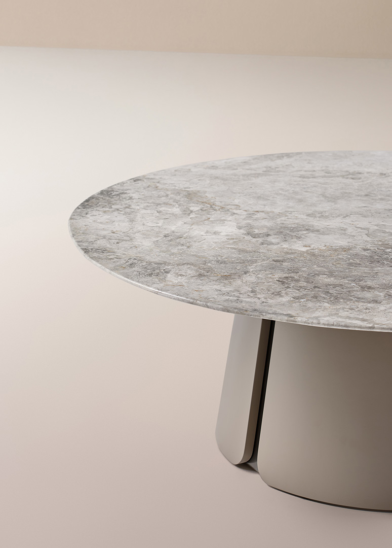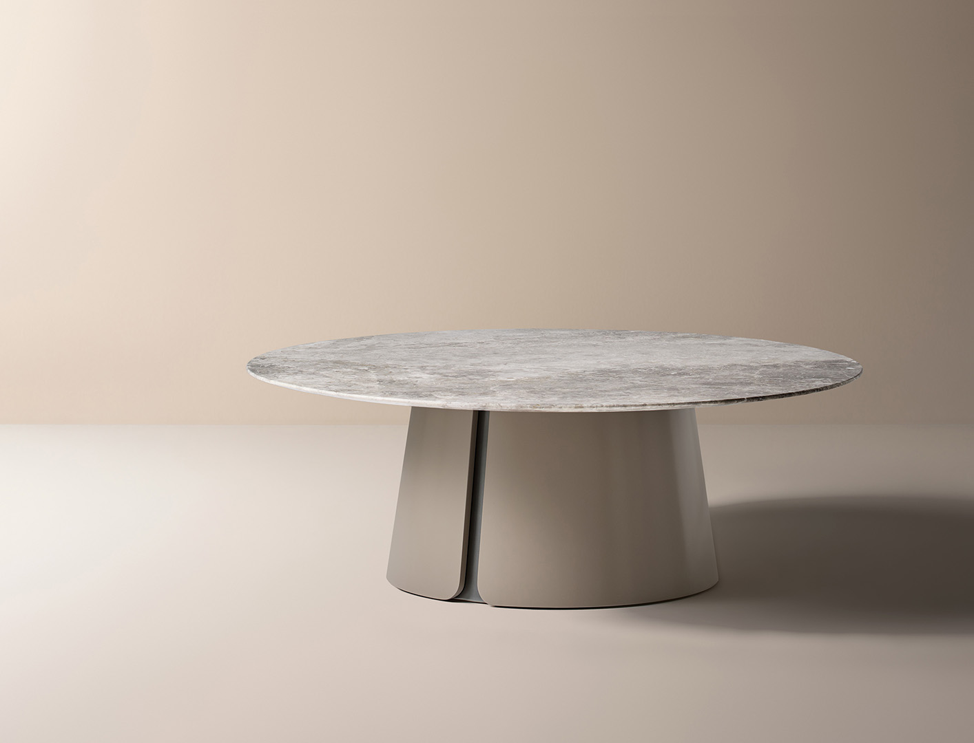 La mesa de centro Stromboli ML, con sobre voladizo y base pedestal cónica, es una pieza única que fusiona la elegancia del mármol con una base lacada, disponible en una amplia gama de tonos, y un delicado detalle de metal. El diseño de sobre voladizo crea una sensación de ligereza y modernidad, convirtiéndola en el complemento perfecto para cualquier salón que busque un toque de lujo discreto pero impactante.