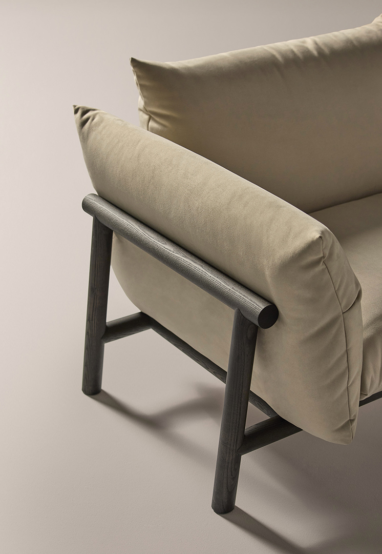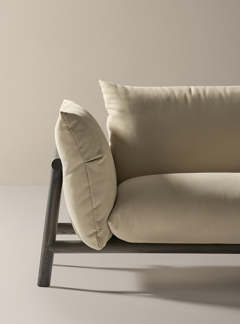 La colección de sofá modular Boho se caracteriza por el diseño de su estructura, realizada en madera de fresno, que aporta carácter y autenticidad, mostrando la belleza natural de la materia y su resistencia serena al paso del tiempo. Sus diferentes opciones de acabado permiten matizar el tono y la personalidad de cada pieza, dialogando con la luz y el espacio que la rodea.