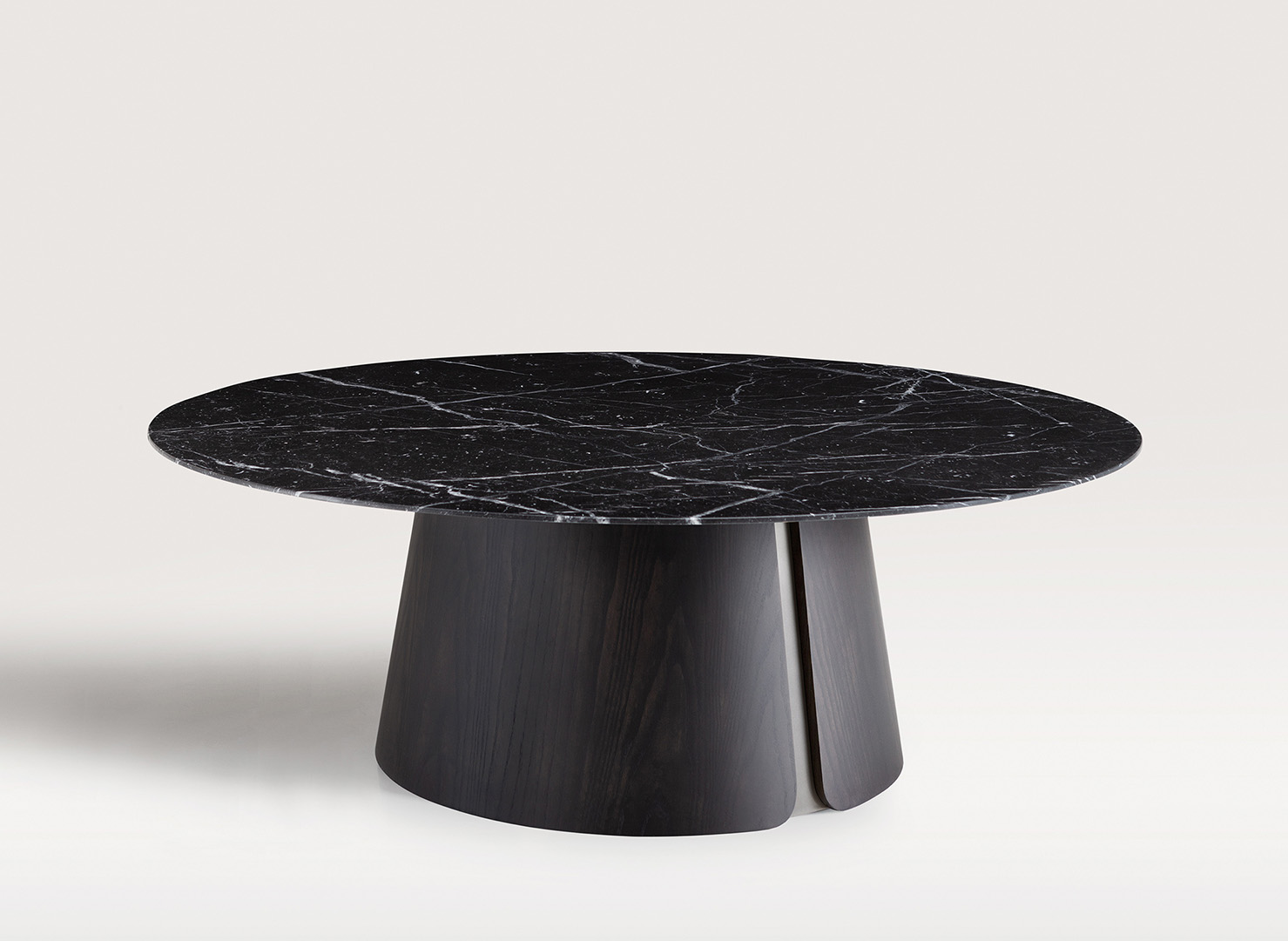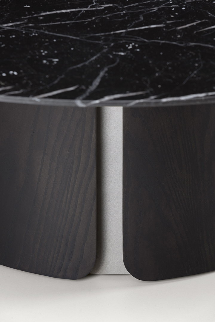The Stromboli MF coffee table is a cutting-edge piece that combines a carefully selected marble top with a customizable ash wood base. The elegant metal detail and the conical design of the base add a sophisticated aesthetic, making it the focal point of any space.