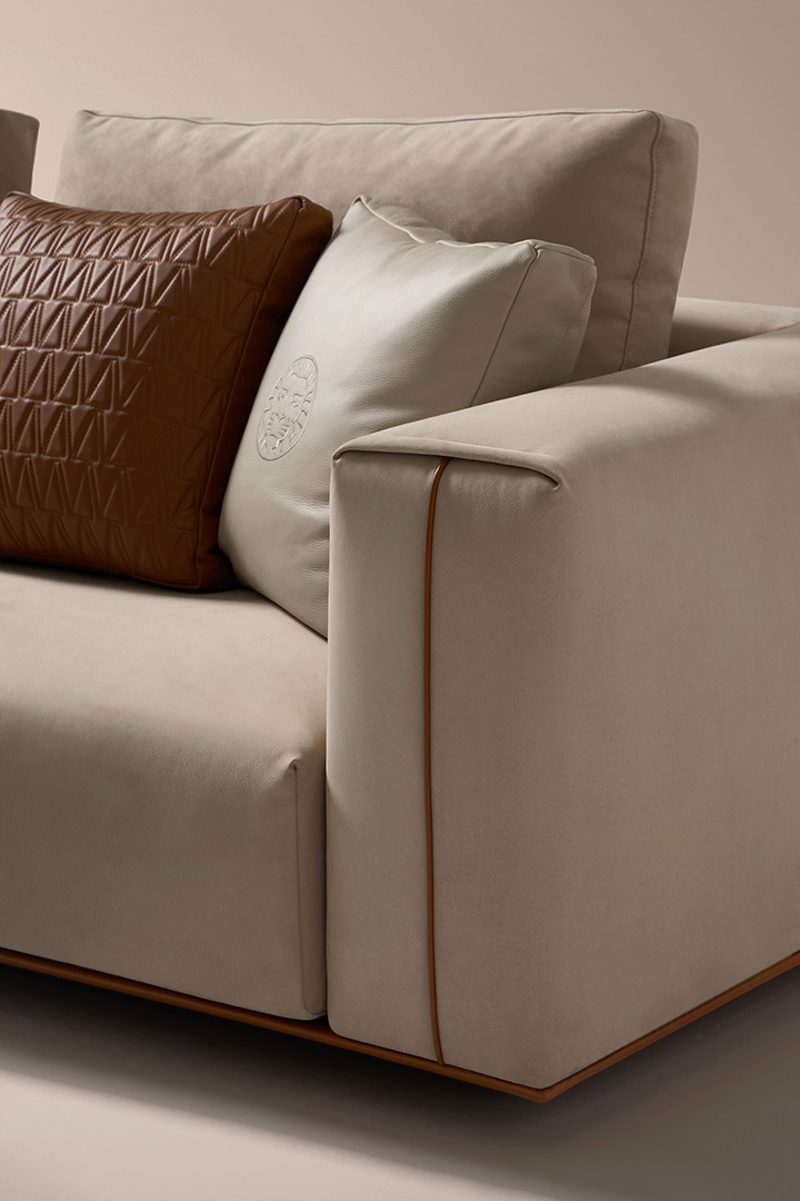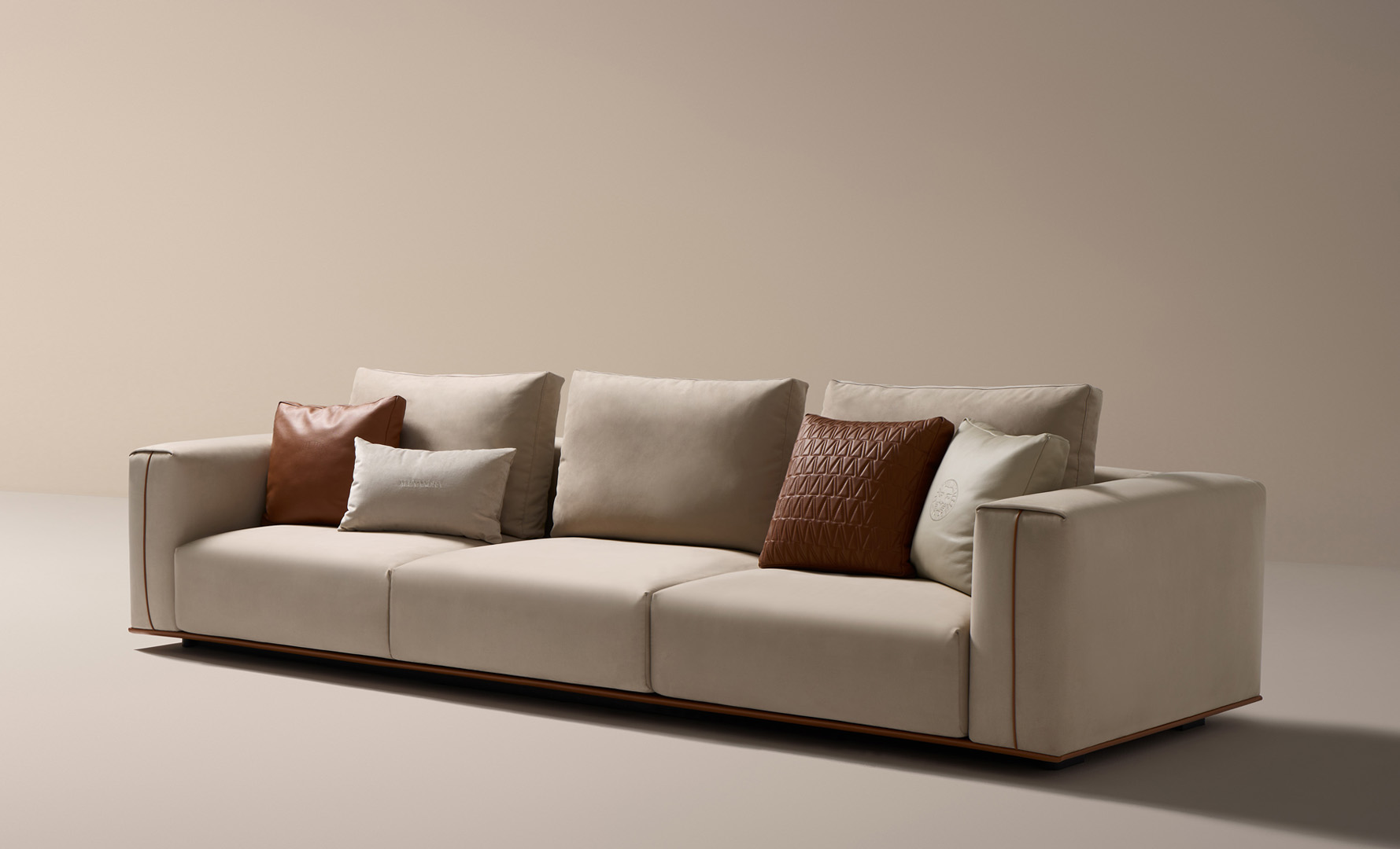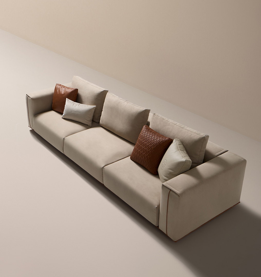 Capri 3-seater sofa is where refined design meets effortless comfort. Featuring a sleek upholstered base in Tech Leather, available in a curated palette of colours, this contemporary piece adds warmth and texture to your living space. Its generous proportions are upholstered in a wide selection of premium fabrics or leathers, finished with a smart tech leather piping that adds a subtle touch of detail and distinction.