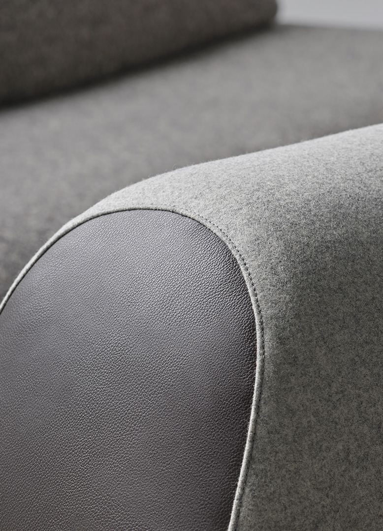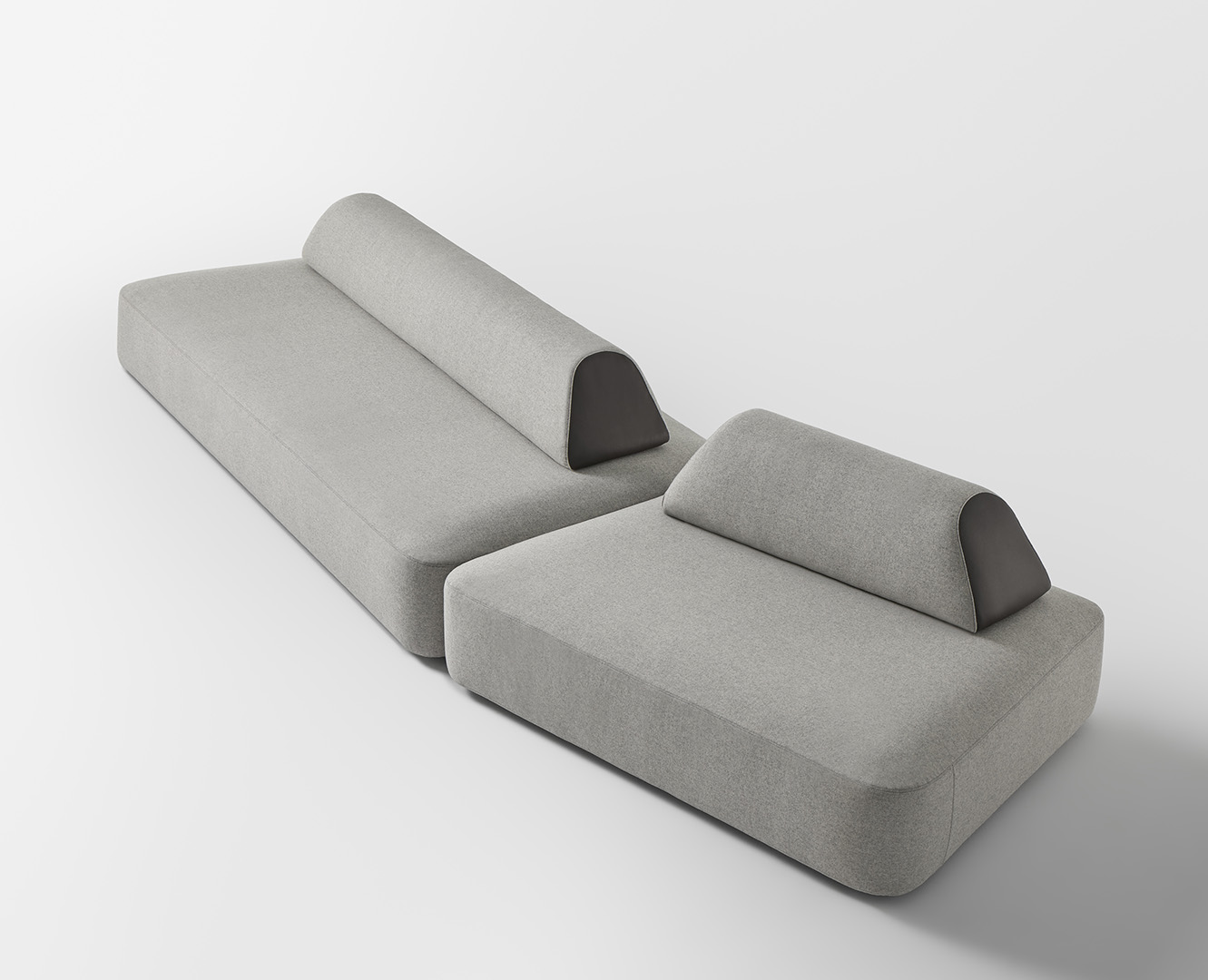 One of Rubik's defining features is its movable backrest, which allows you to adjust its position to personalise both comfort and use at any moment. This detail adds an extra level of flexibility, turning every configuration into a tailored experience. The backrest also features an elegant leather detail on the sides, a premium finish that enhances the design and reflects the attention to detail of a true designer piece.