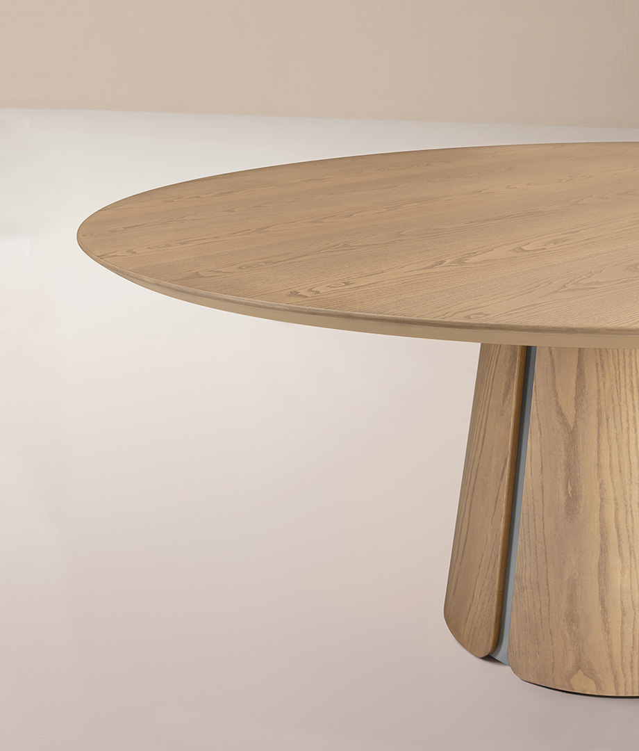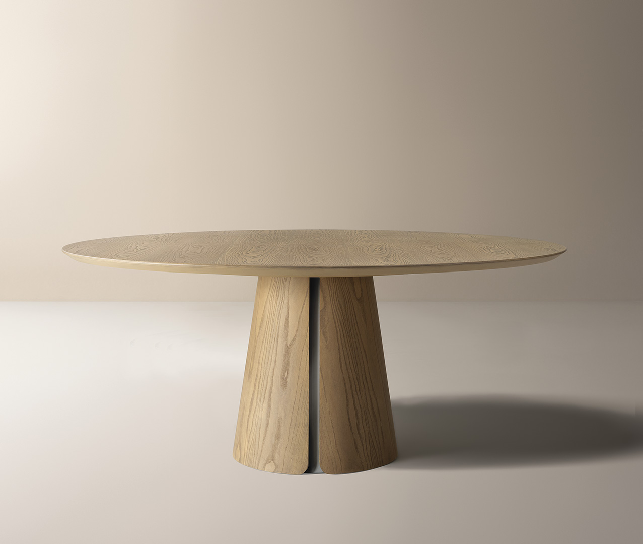 The round Stromboli FR 180D dining table stands out for its elegance and simplicity. Crafted from ash wood, its base features a detailed metal touch, enhancing its contemporary design. Its round, balanced shape creates a sophisticated atmosphere, making it the focal point of any dining room.