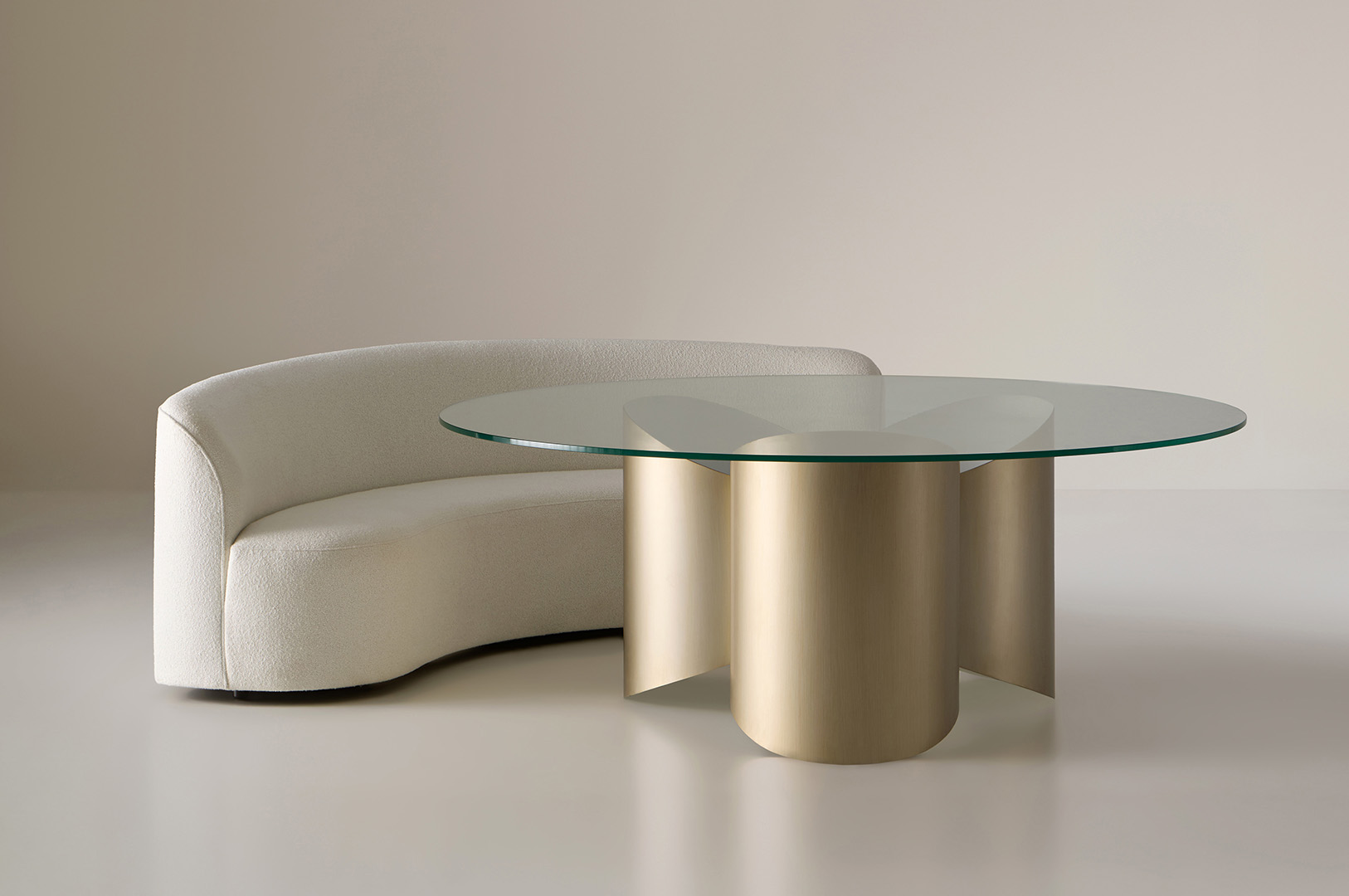 La mesa de comedor Bow, con un diámetro de 180 cm, diseñada por estudi{H}ac-jmferrero, combina funcionalidad y diseño escultórico en una pieza perfecta para 8 comensales. Inspirada en la silueta de una pajarita de vestir, la base de la mesa está formada por cilindros seccionados que se entrelazan para crear una estructura estable y visualmente impactante. Este diseño geométrico no solo aporta solidez, sino también una estética moderna y sofisticada que se adapta a cualquier espacio. La tapa de cristal óptico templado de 15 mm añade un toque de elegancia y ligereza, haciendo que Bow sea el centro de atención en cualquier comedor.