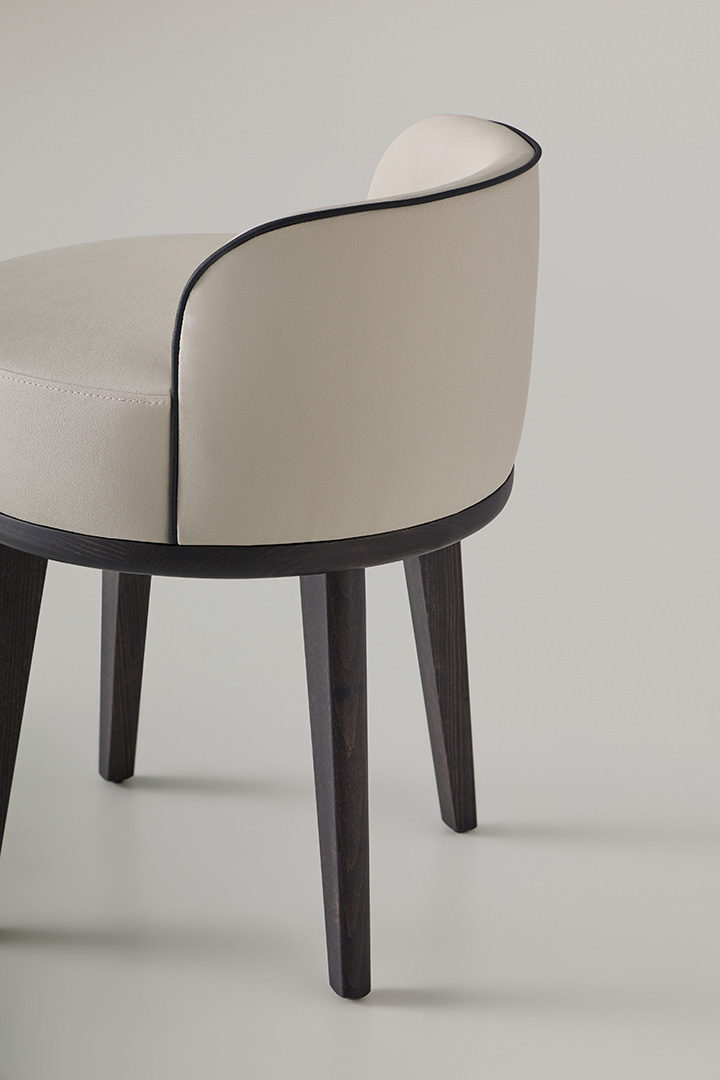 Esta silla no solo destaca por su estética contemporánea, sino también por las múltiples opciones de personalización disponibles. La posibilidad de elegir entre diferentes acabados para las patas de haya permite integrar la silla tocador Club en cualquier entorno, desde los más minimalistas hasta los más sofisticados. Es una pieza clave para añadir un toque de distinción y funcionalidad a tu espacio personal.