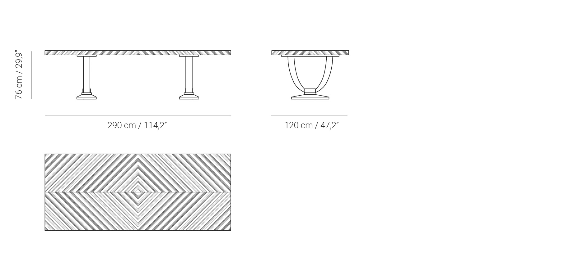 Chelsea es una elegante mesa de comedor de estilo contemporáneo. Con originales patas arqueadas en forma de U que reposan sobre un patín de madera y con una tapa a cuatro aguas. Disponible en varios acabados y en dos medidas de largo; 230 y 290cm.