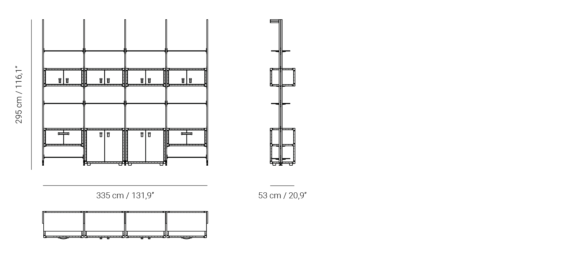 La estantería modular Traveler, diseñada por Jacobo Ventura, es la expresión perfecta del estilo contemporáneo y la elegancia. Compuesta por 2 módulos con cajón, 2 módulos de doble altura con puertas, y 4 módulos con puerta abatible vertical, esta pieza ofrece una gran capacidad de almacenamiento, mientras que sus 14 baldas de cristal aportan ligereza visual y espacio para exhibir objetos decorativos. La combinación de melanina de alta calidad y revestimientos de piel grabada en los módulos crea un contraste sofisticado que eleva cualquier ambiente.