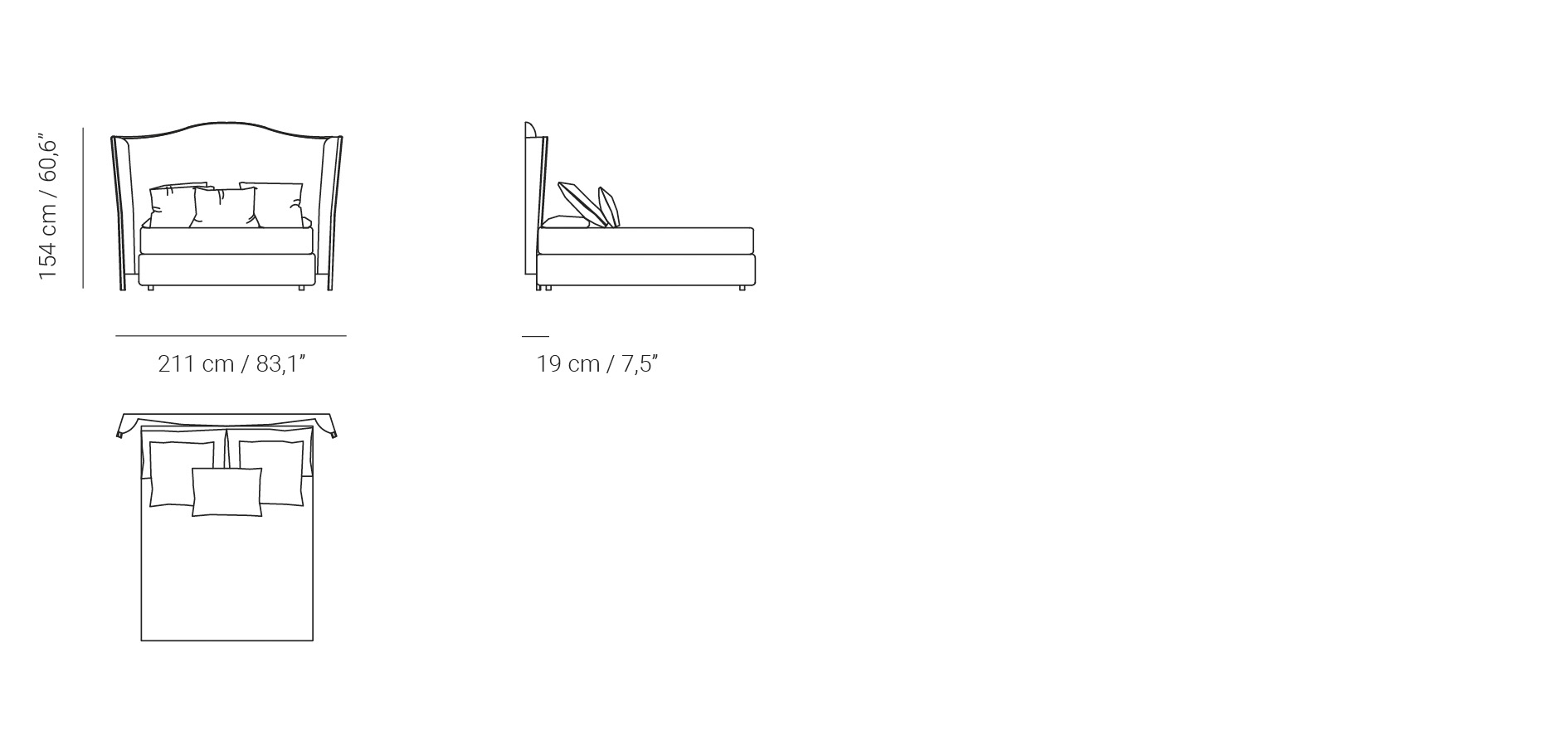 El estilizado cabecero Lauren ha sido diseñado por Jacobo Ventura. De líneas elegantes, se adapta a dormitorios de estilo contemporáneo.