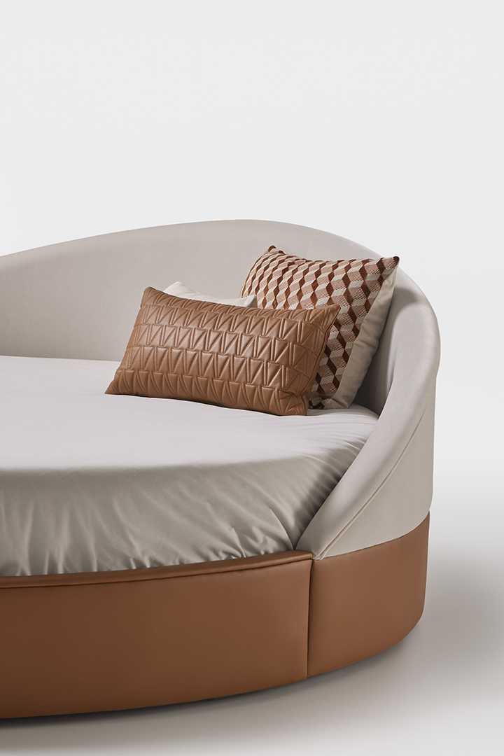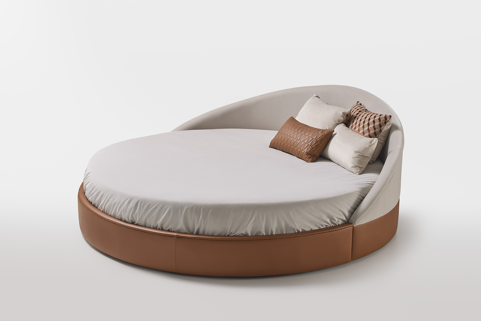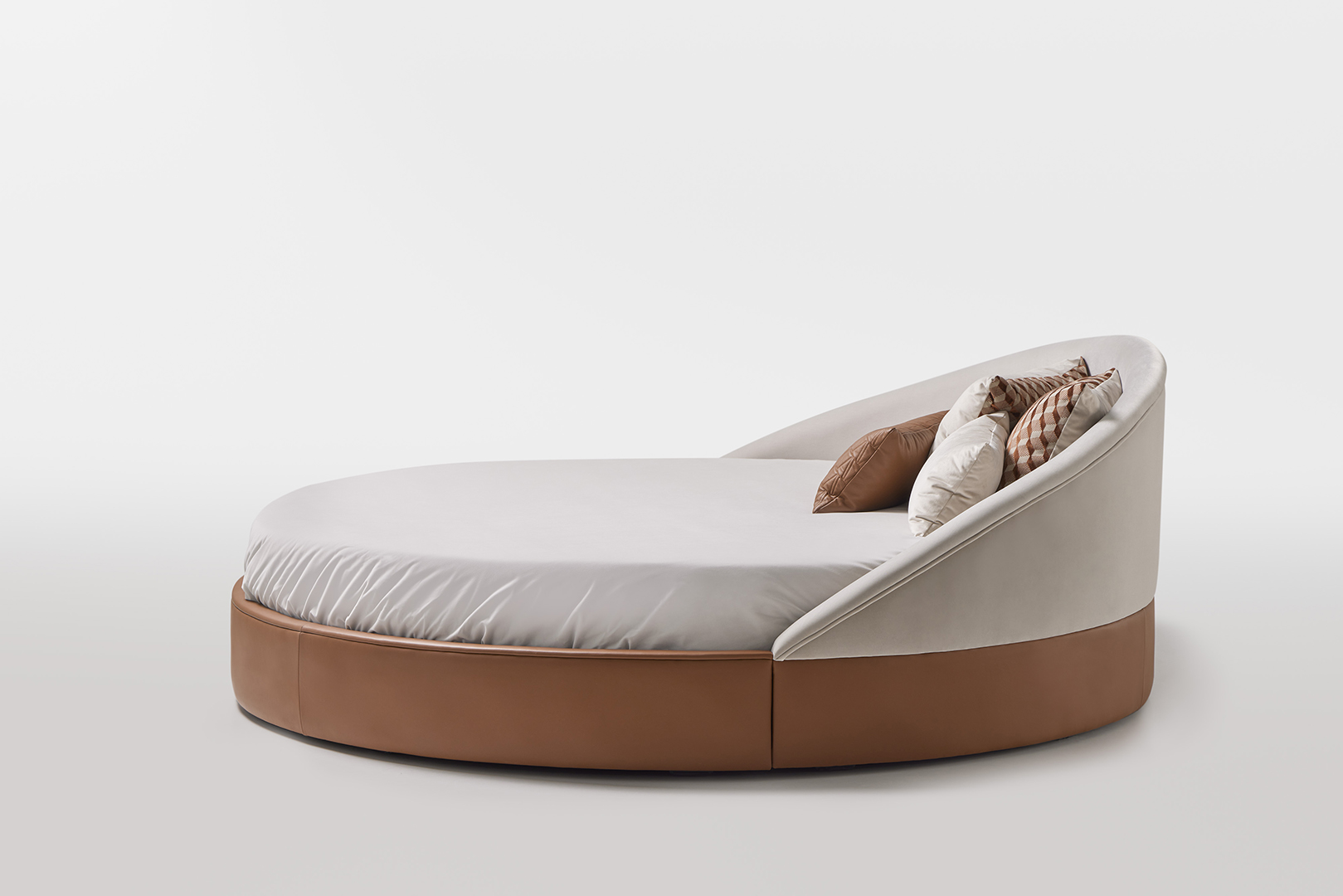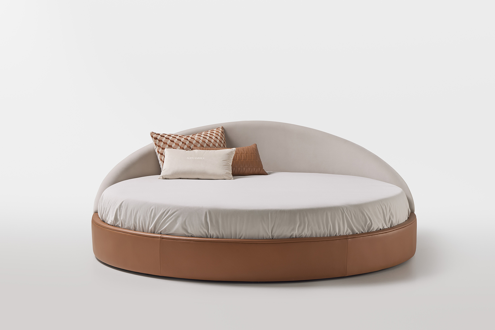 Diseñada para colchones de 220 centímetros de diámetro. El cabecero curvo añade un toque distintivo de elegancia contemporánea, mientras que la base tapizada garantiza confort y durabilidad. Disponible en una amplia selección de telas, terciopelos y pieles, permite crear una pieza única que transformará su dormitorio en un espacio de ensueño donde el descanso se combina con el diseño y la exclusividad.