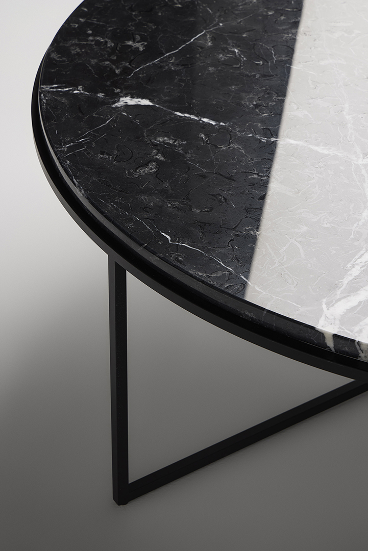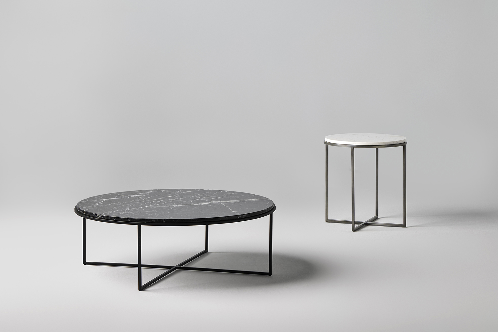 La mesa centro Denver de formato circular se integra perfectamente en salones contemporáneos. La colección Denver de mesas y mobiliario auxiliar, de estilo contemporáneo, se caracteriza por sus bases de hierro de apariencia ligera pero a la vez industrial, que mantienen el equilibrio con tres diferentes tipos de tablero: mármol, madera o piel sintética. Las patas de hierro están disponibles en una amplia gama de acabados.