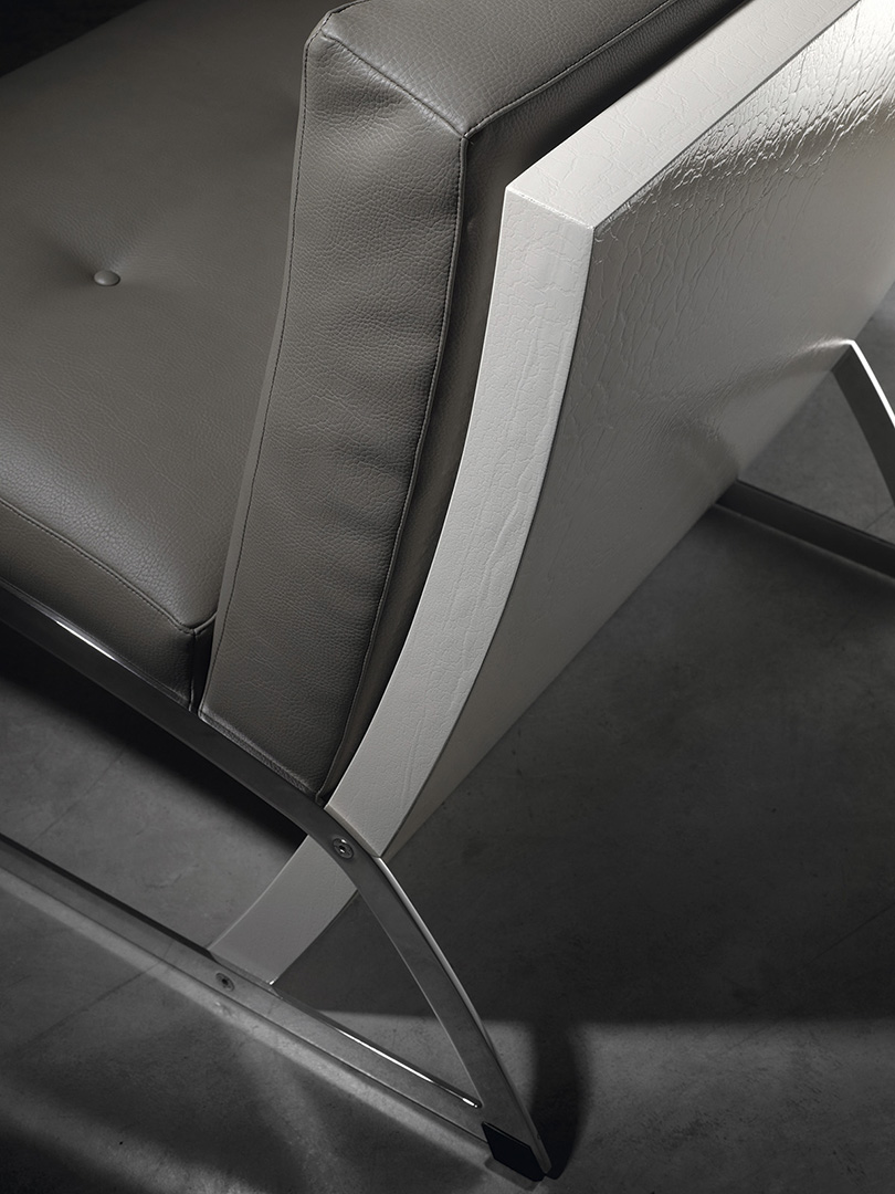 La notable presencia de carácter en el sillón CULT es digna de destacar. La unión entre el respaldo, fabricado en contrachapado de madera curvada, y la ligera estructura de acero, provoca una sutil sensación de estar casi suspendido en el aire, creando una gran sensación de bienestar. Su aplicación es idónea tanto para hogar como instalaciones.