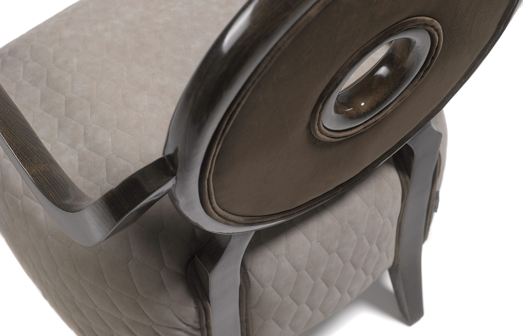 La personalidad del sillón ECLIPSE radica en su clásico respaldo de medallón con un toque moderno gracias a su orificio central, permitiendo que la sencillez de su estructura de madera al aire no sobrecargue su majestuoso diseño. De amplio y profundo asiento invita a la comodidad.