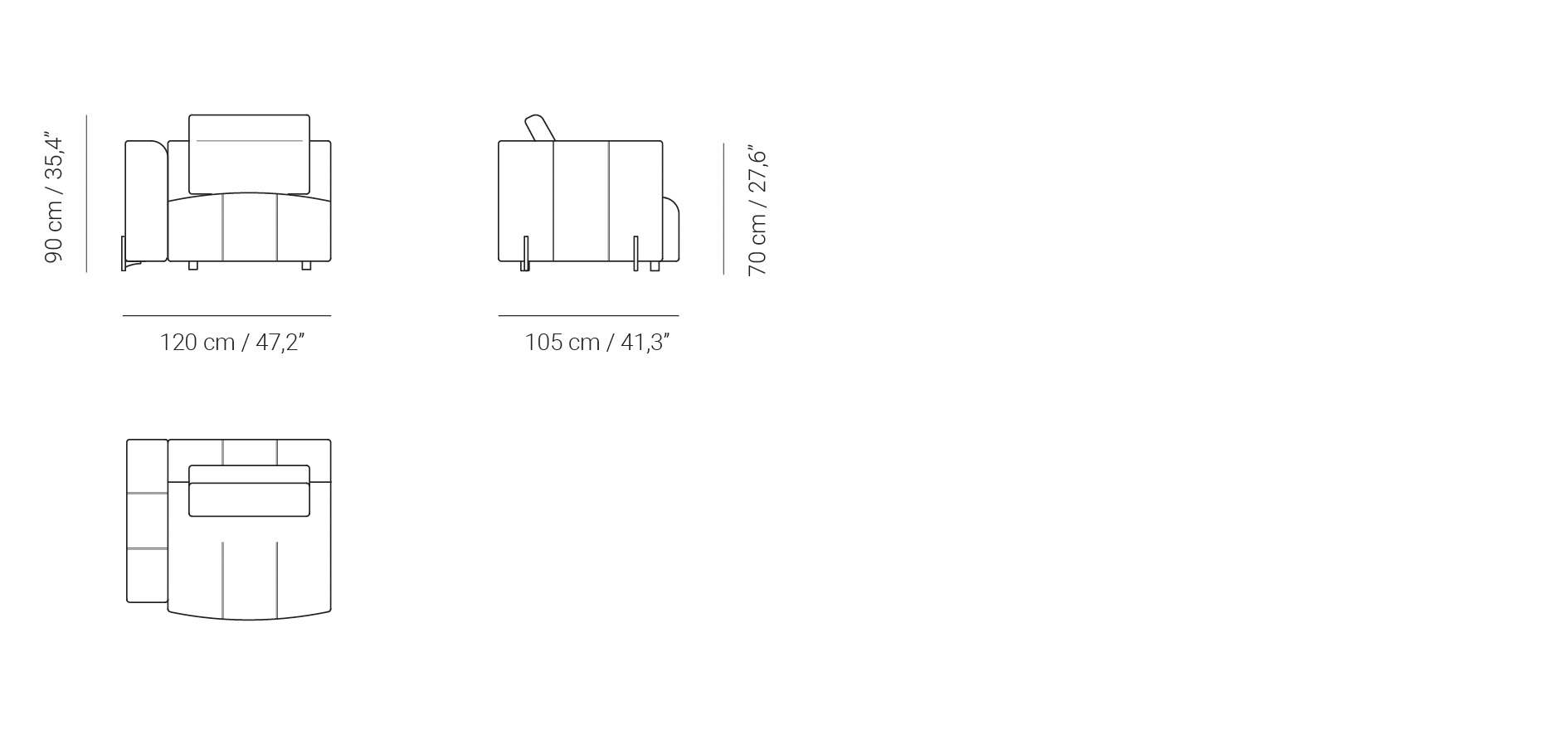 La colección Bellagio permite un alto grado de personalización. Dos opciones de traseras y brazos: recto y ancho, mantiene una estética más contemporánea, o curvo y ligero, aporta originalidad al diseño. Disponible una amplia gama de telas y pieles para el tapizado. Las patas metálicas se fabrican en diferentes acabados.