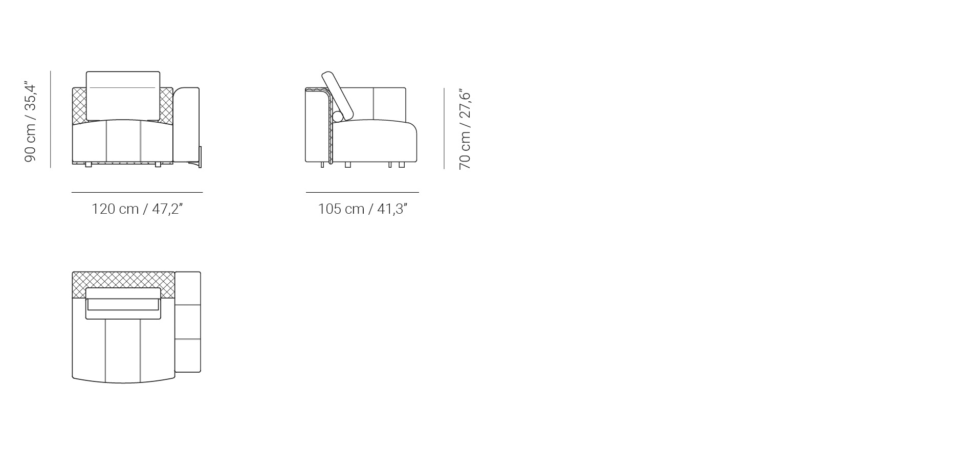 La colección Bellagio permite un alto grado de personalización. Dos opciones de traseras y brazos: recto y ancho, mantiene una estética más contemporánea, o curvo y ligero, aporta originalidad al diseño. Disponible una amplia gama de telas y pieles para el tapizado. Las patas metálicas se fabrican en diferentes acabados.