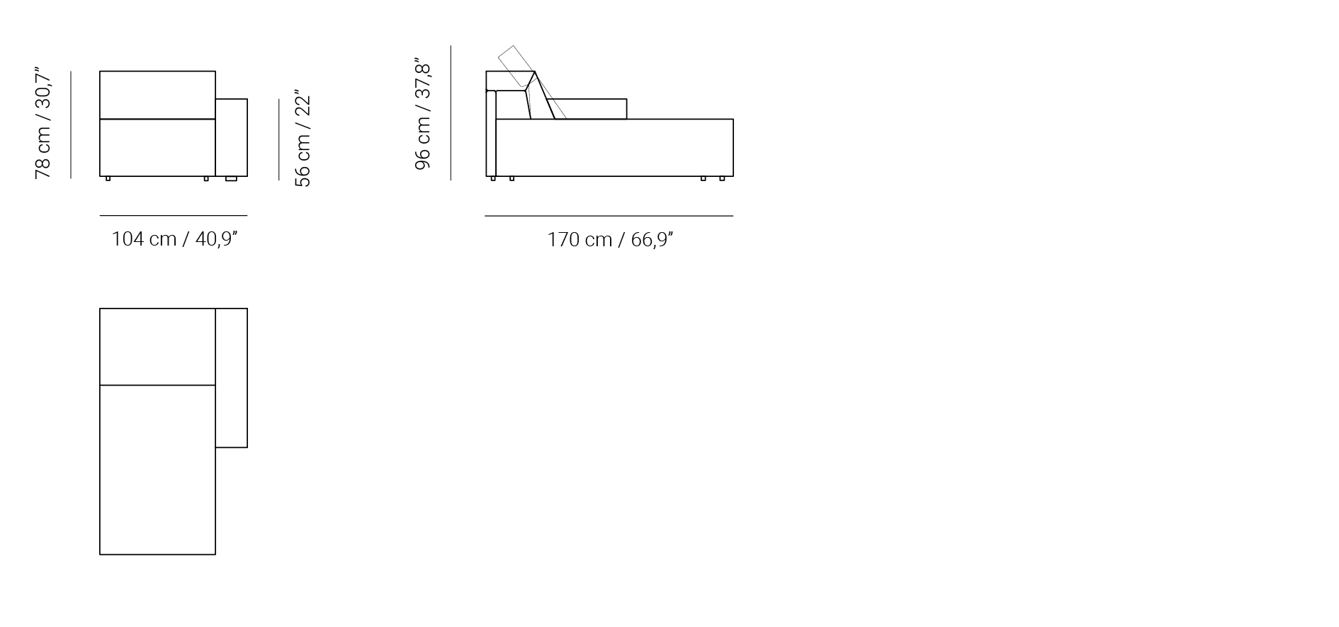 Chaise longue Cosmopol Relax con brazo a la derecha y respaldo reclinable eléctrico.