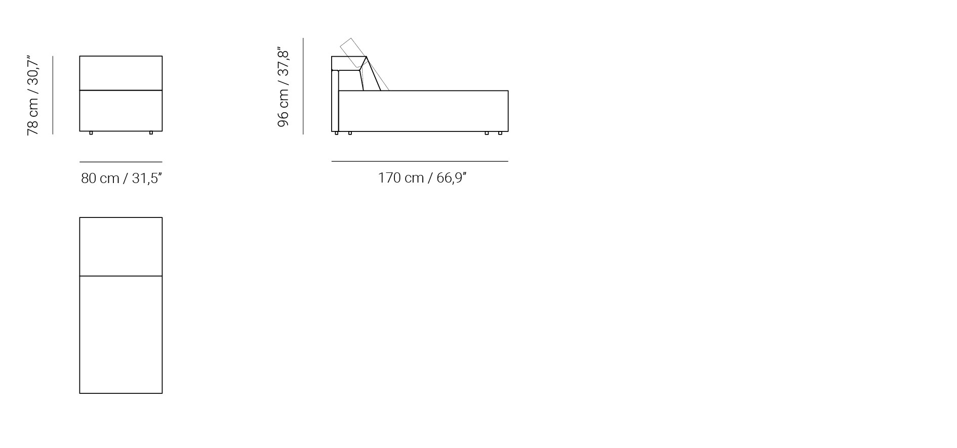 Módulo central chaise longue sin brazos Cosmopol Relax con respaldo reclinable eléctrico.