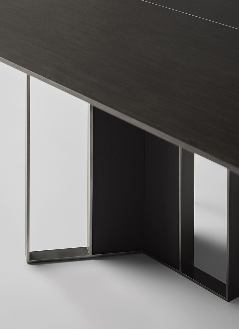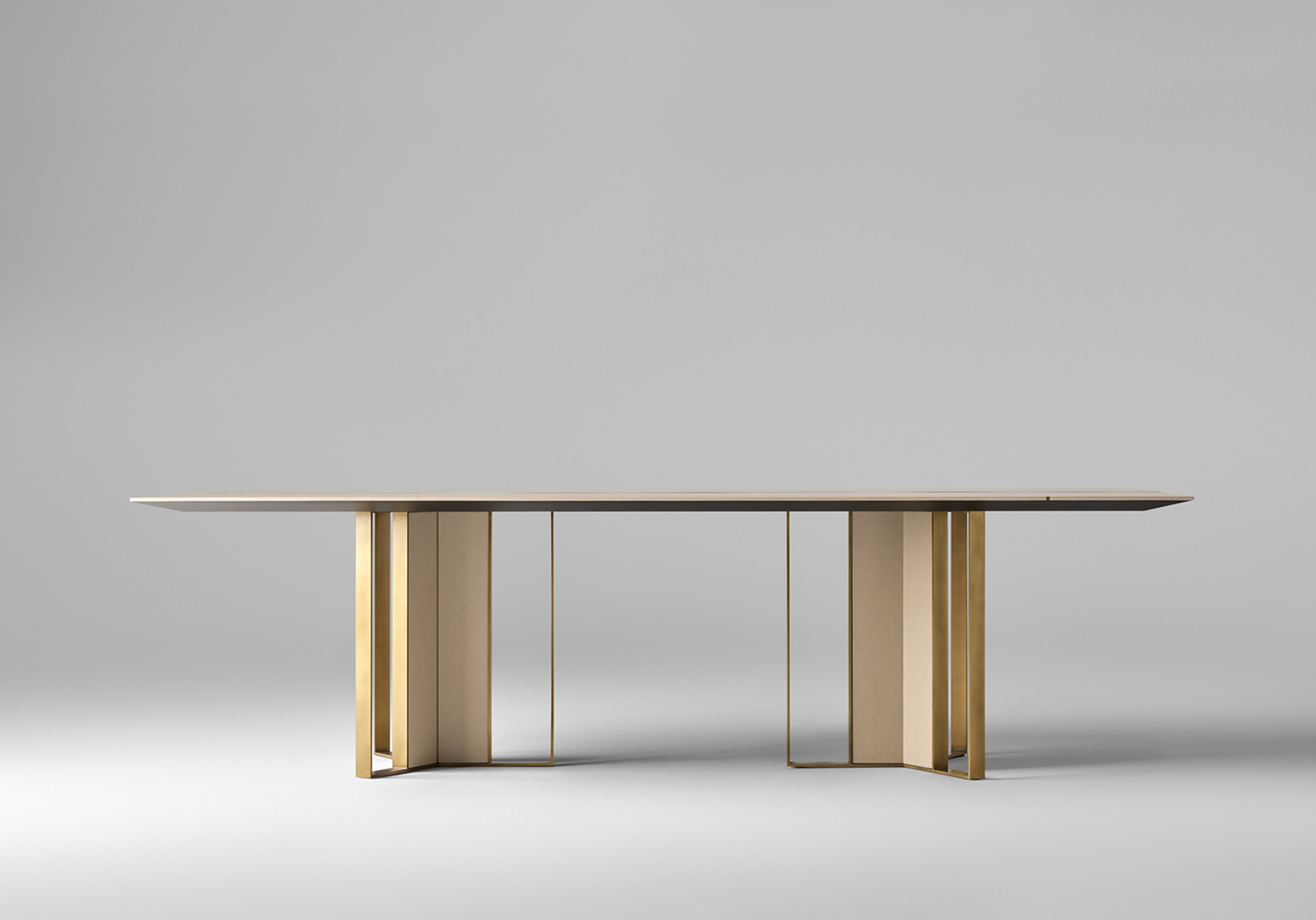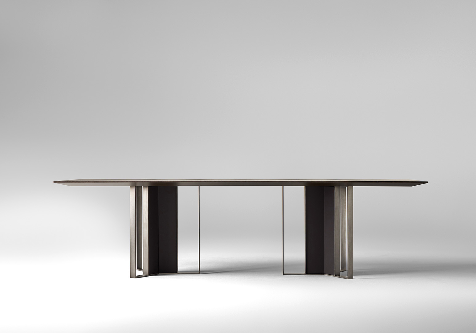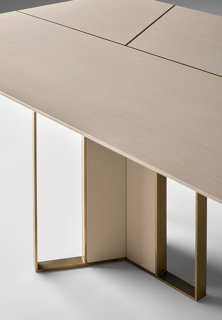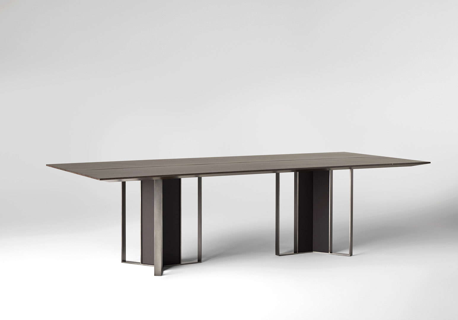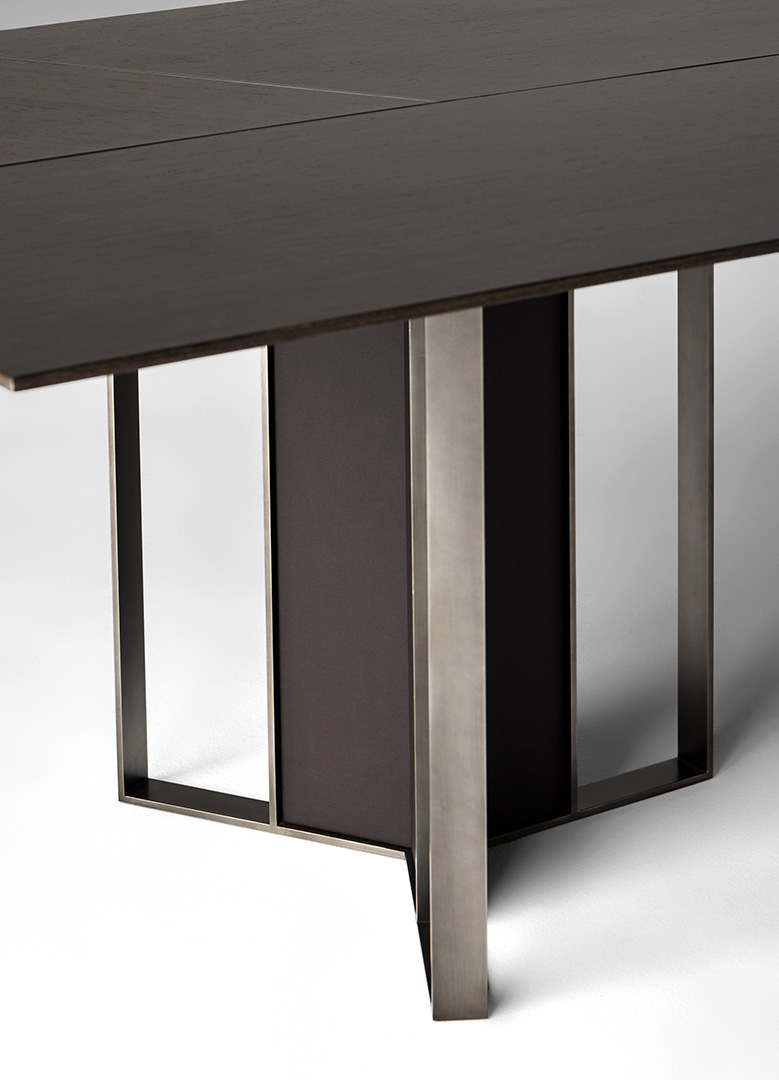 Sofisticación y diseño definen a la mesa de comedor Tempo. Una estética vanguardista y depurada, un diseño libre de opulencias que posee el don de la elegancia y la atemporalidad, concebida para los amantes del lujo sobrio y en armonía. Ramón Esteve asume la responsabilidad de poner en valor los materiales utilizados, para ello combina los tradicionales con detalles metálicos y piel, como seña de identidad de la colección.