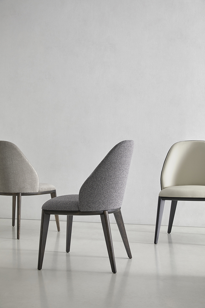 Personalízala con nuestra amplia colección de telas y pieles para tapizar. Las patas de madera de haya se pueden acabar en una amplia gama de tintes o lacados.