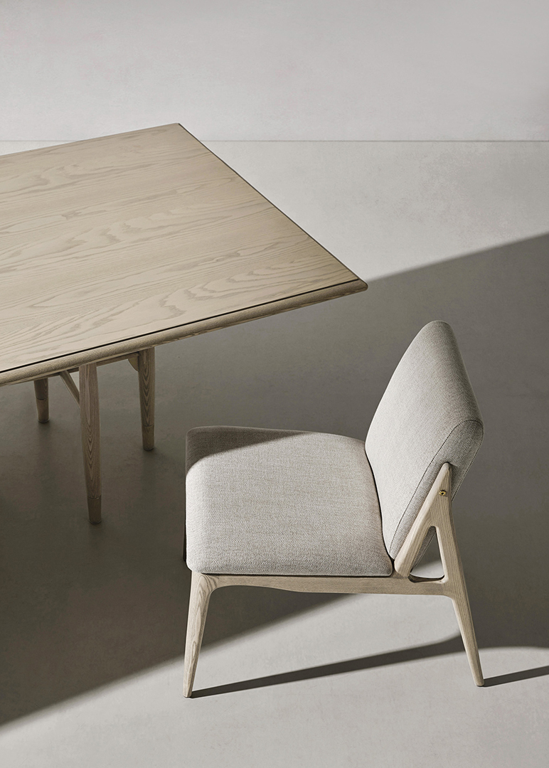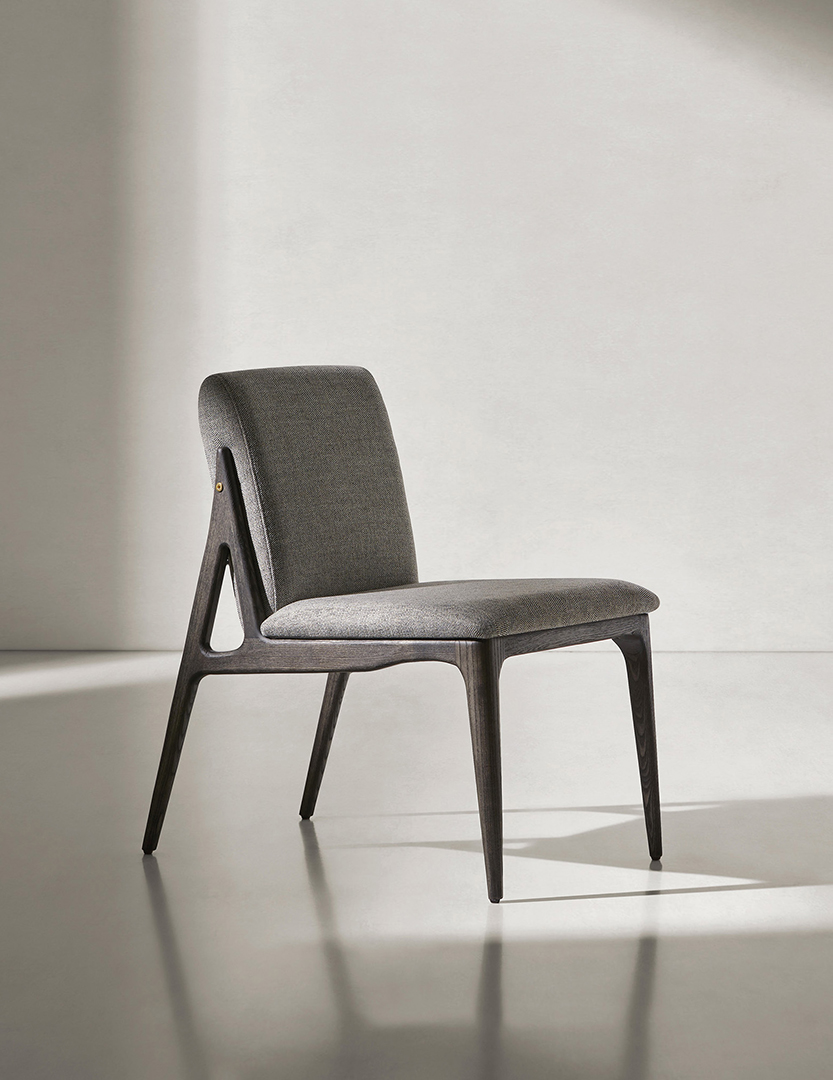 La silla moderna Shi pertenece a la colección The One, que nace de la colaboración entre Alexandra y el prestigioso diseñador asiático Wu Bin. Su diseño refinado fusiona la elegancia de la antigua tradición china con la moderna estética europea. Formas inspiradas en el Qi-Yun de la caligrafía china, símbolo del encanto y la belleza innata de una obra de arte, combinada con la sobriedad de la arquitectura técnica occidental.