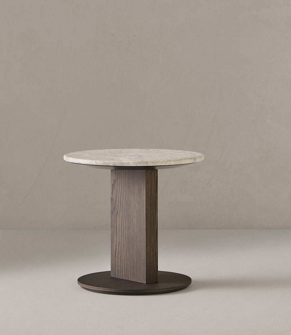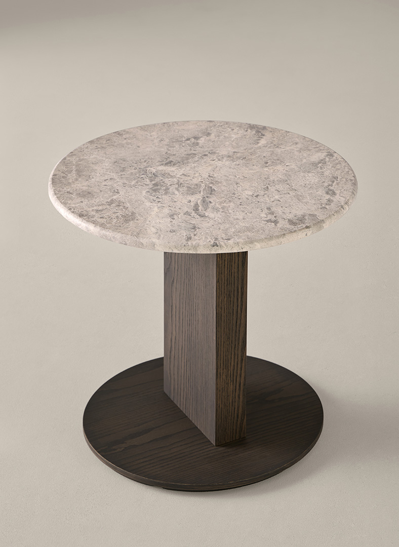 Fabricada con materiales de alta calidad, presenta una encimera redonda de mármol que se apoya sobre una elegante pata pedestal de fresno. Con acabados personalizables, la mesa auxiliar Estrato-High ofrece una oportunidad única para personalizar tu entorno con un toque de elegancia atemporal.