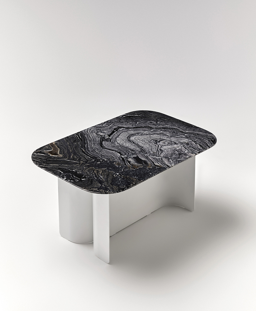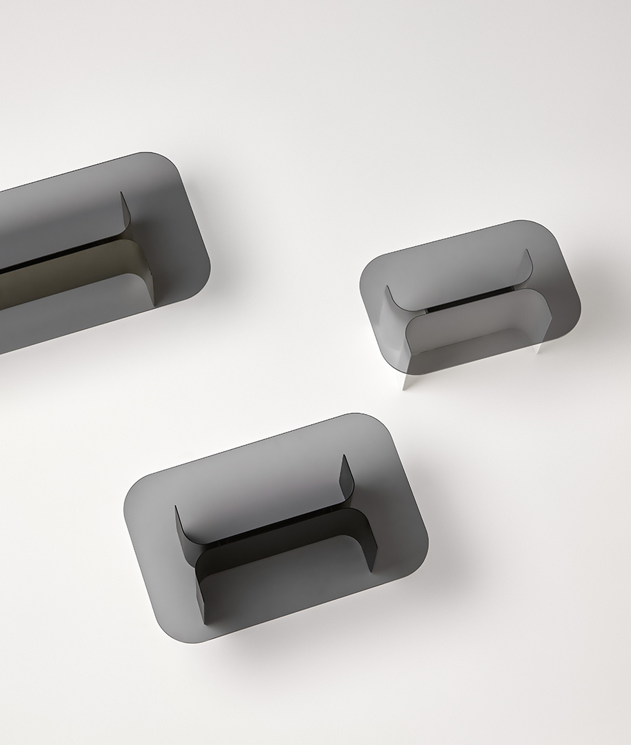 Jacobo Ventura ha creado la colección de mesas centros y auxiliares Kentia para aportar diseño y elegancia a los espacios vanguardistas sin sobrecargar el ambiente. La forma curvada de la chapa de hierro, que constituye la base de las mesas, posee una sencillez llena fuerza capaz de sujetar con delicadeza el sobre de cristal, mármol o porcelánico.
