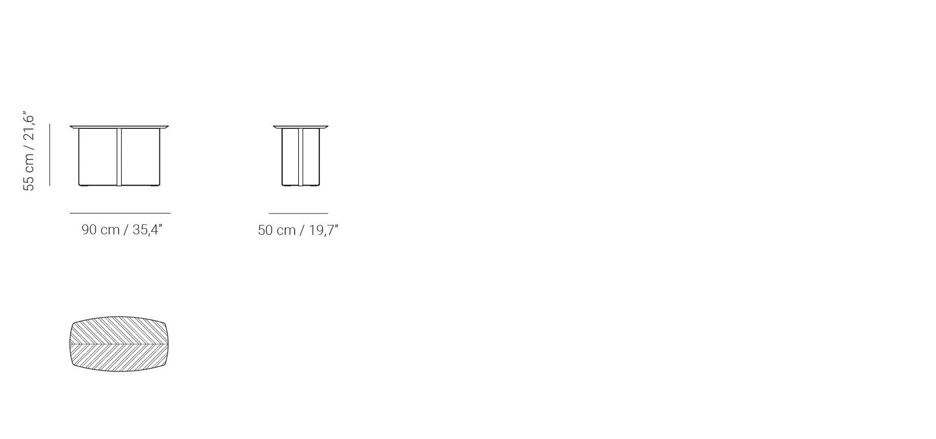La mesa auxiliar WIND es un claro ejemplo de que la sencillez es un aliado del diseño, integrándose perfectamente en ambientes contemporáneos. Su tablero biselado está chapado en forma de espiga, apoya sobre una base de patines cruzados de pletina de hierro, que le confieren un aire moderno sin recargar el espacio. Disponible con el sobre redondo, de 50 cm. de diámetro, o rectangular, de 90 x 50 cm.