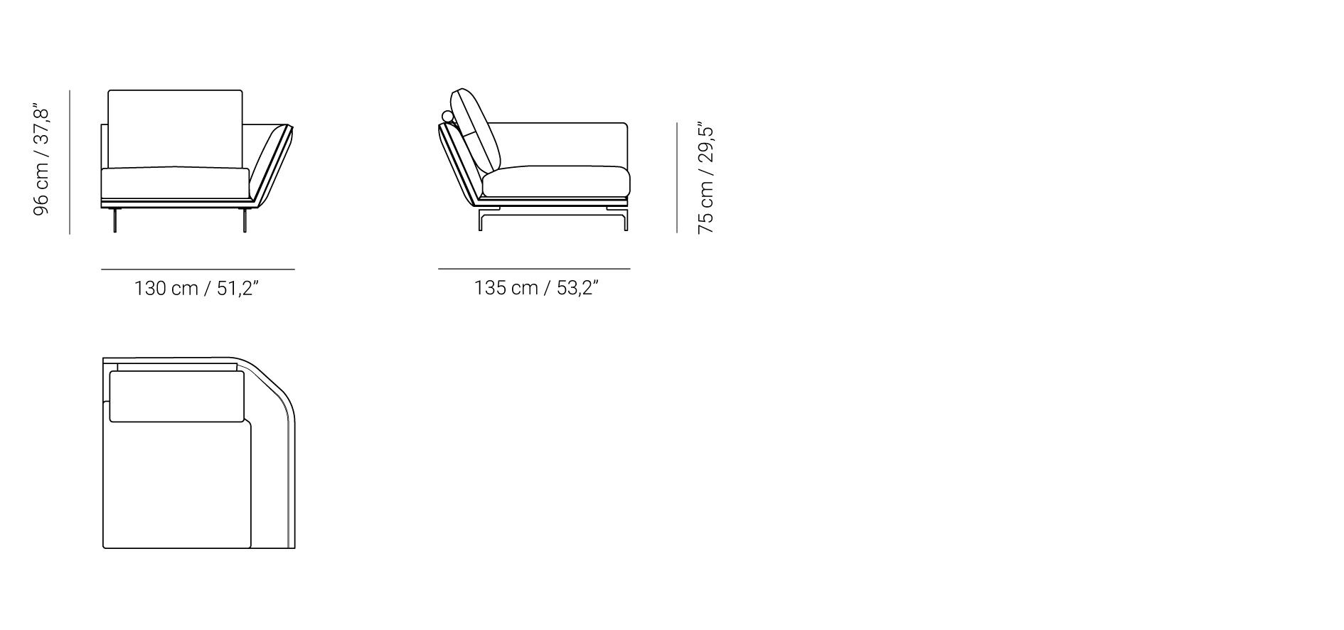 Diseñado para la comodidad, con proporciones generosas que maximizan los ángulos inclinados para mejorar la ergonomía. Una colección equilibrada que cubre cualquier necesidad ya que ofrece infinidad de composiciones.