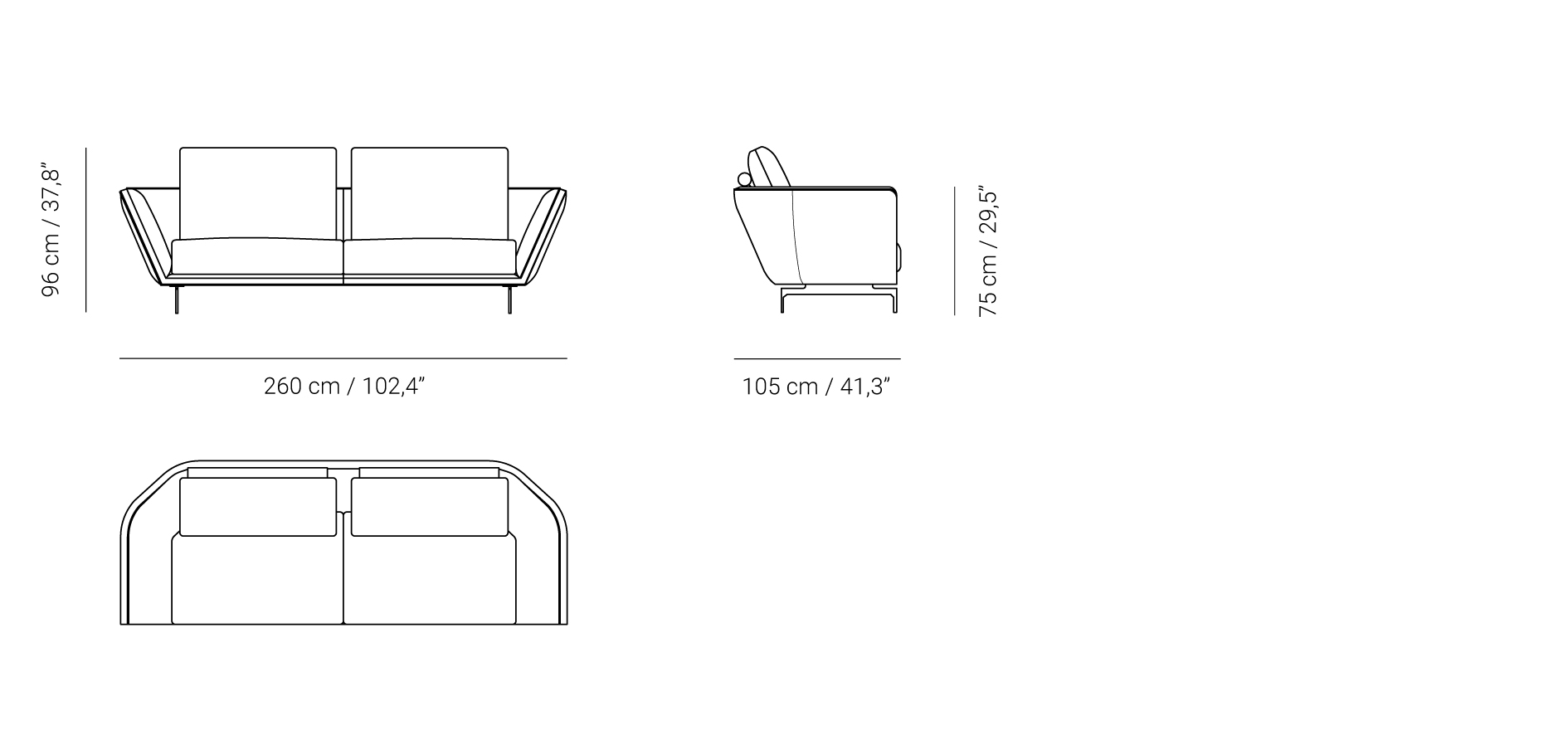Un sofá pensado para el confort, con una geometría generosa, que usa los ángulos inclinados para mejorar la ergonomía. Una pieza muy reconocible, con detalles en cada parte del modelo.