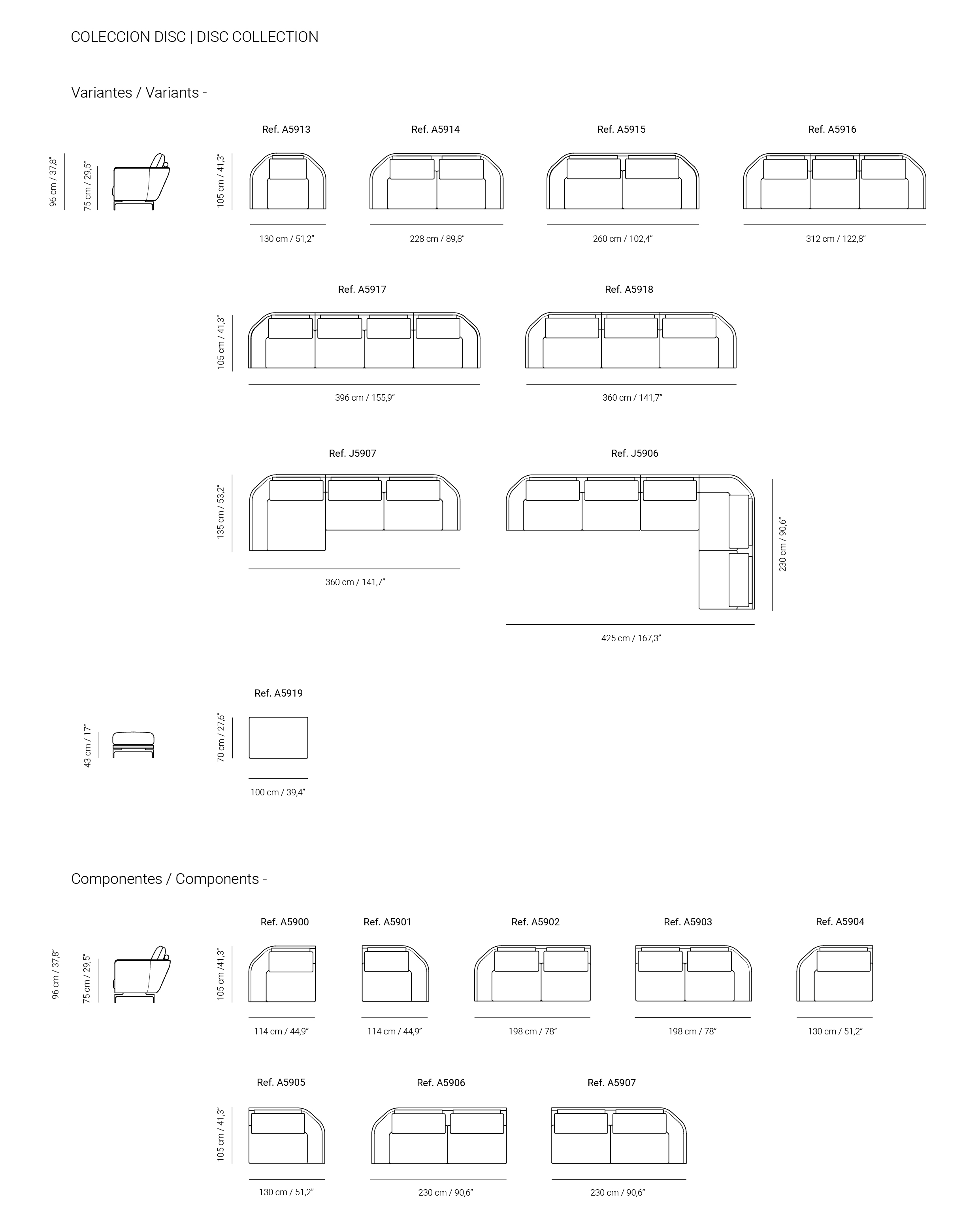 Disc permite crear configuraciones a medida. Ideal para hacer composiciones de grandes dimensiones. Una familia de sofás, módulos y pufs muy equilibrada que cubre cualquier necesidad.