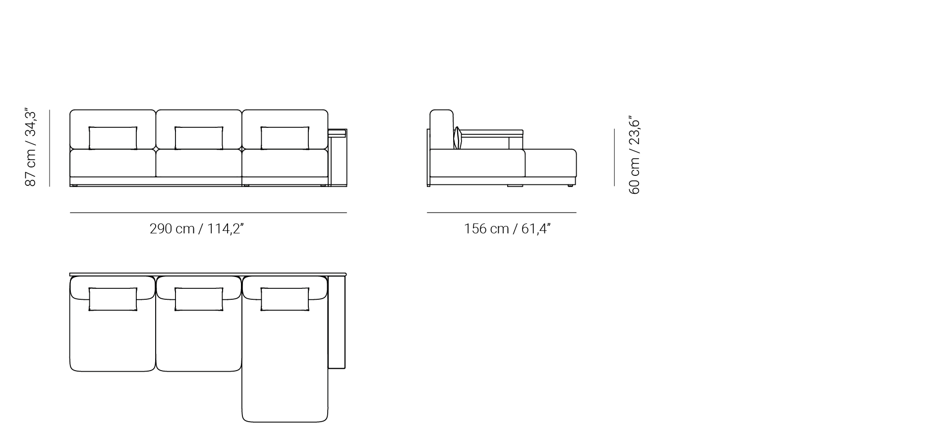 El increíble módulo Jude compuesto por chaise longue derecha y dos asientos, es la elección ideal para crear grandes composiciones de sofá con un estilo inigualables.