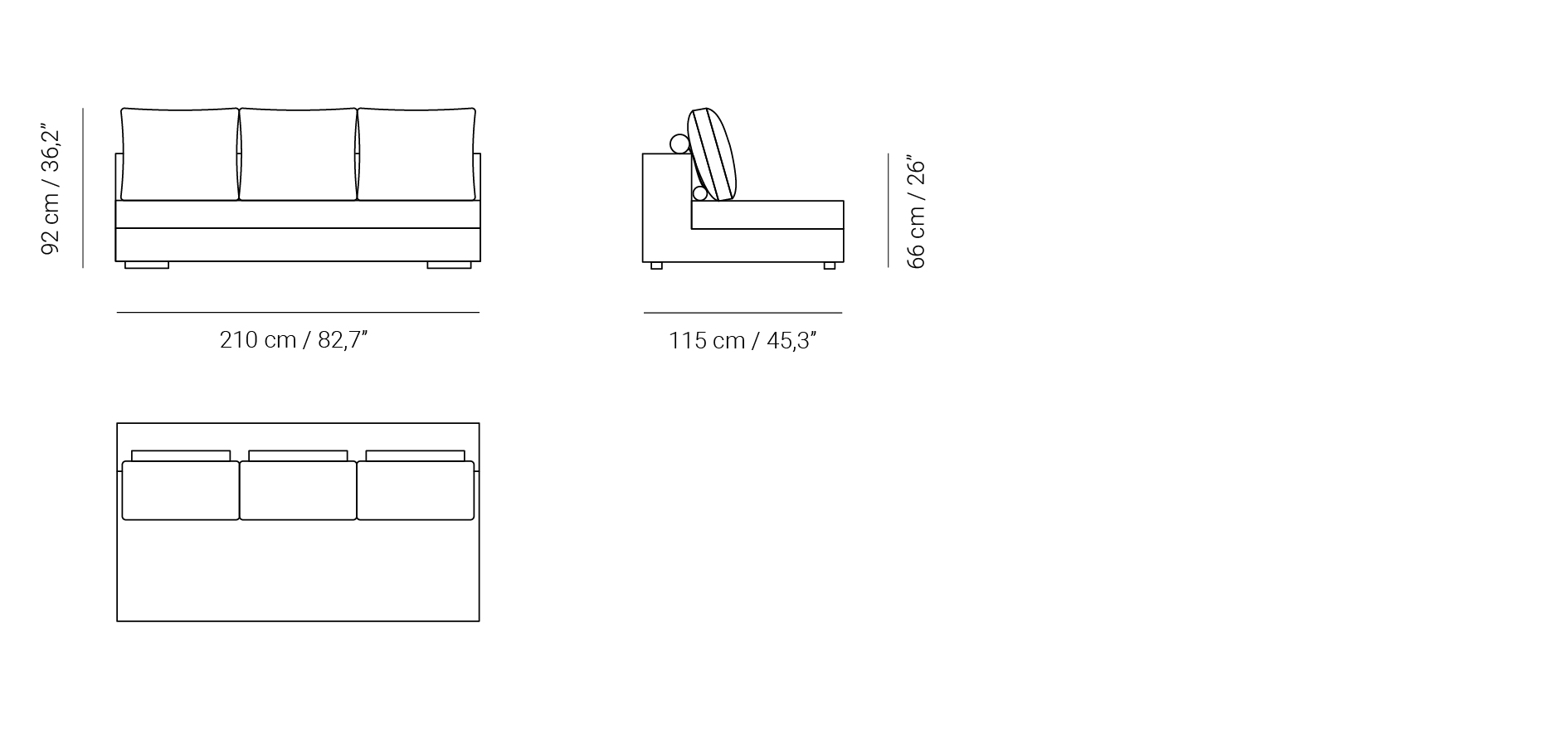 La peculiaridad de este módulo central es su gran tamaño. Pocos sofás modulares tienen piezas tan anchas que permiten crear grandes combinaciones con menos uniones.