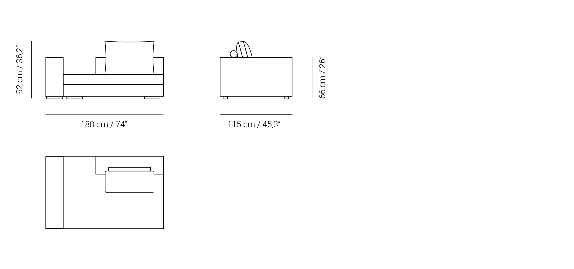 Sofá modular Prince con respaldo meridienne y brazo izquierda.