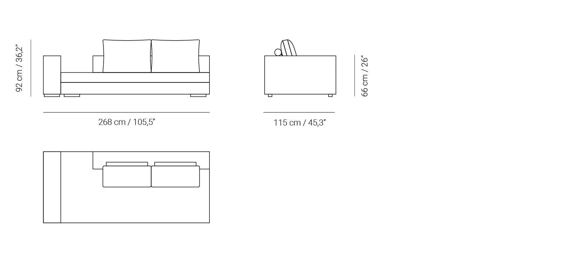 Módulo Prince-268I para composición sofá modular con respaldo meridienne y brazo izquierdo.