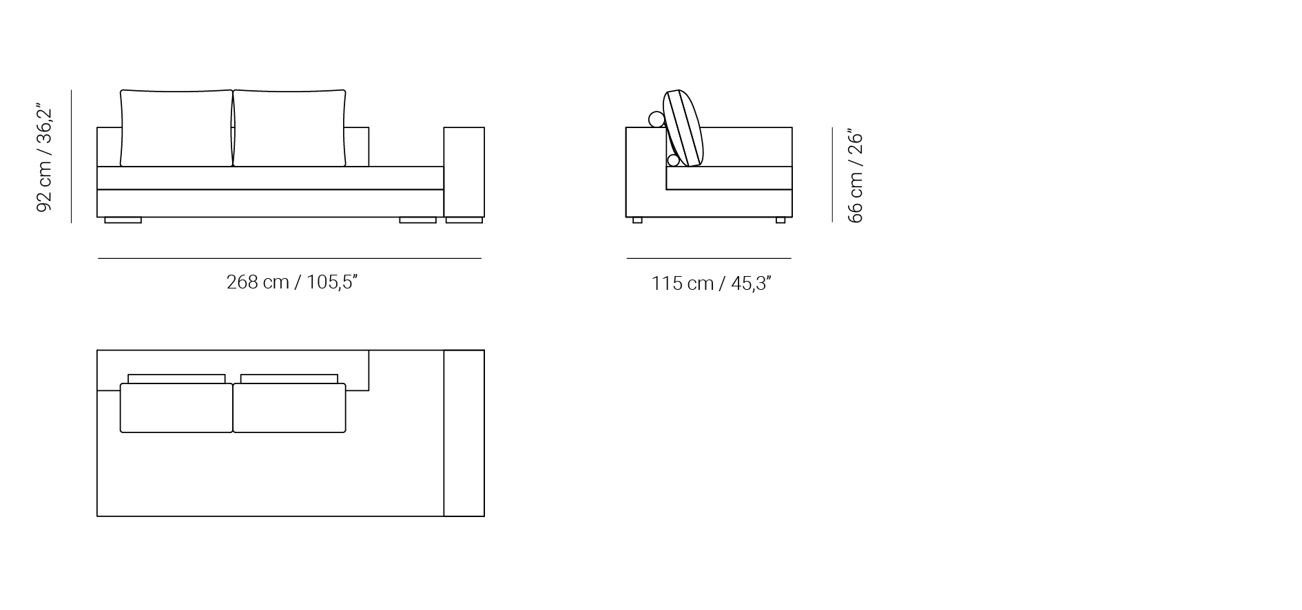 Sofá modular Prince-268D con respaldo meridienne y brazo derecha.
