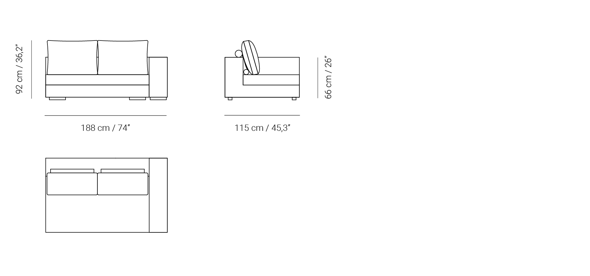 Módulo terminal Prince tamaño XL con brazo a la derecha para combinaciones de sofá modular Prince.