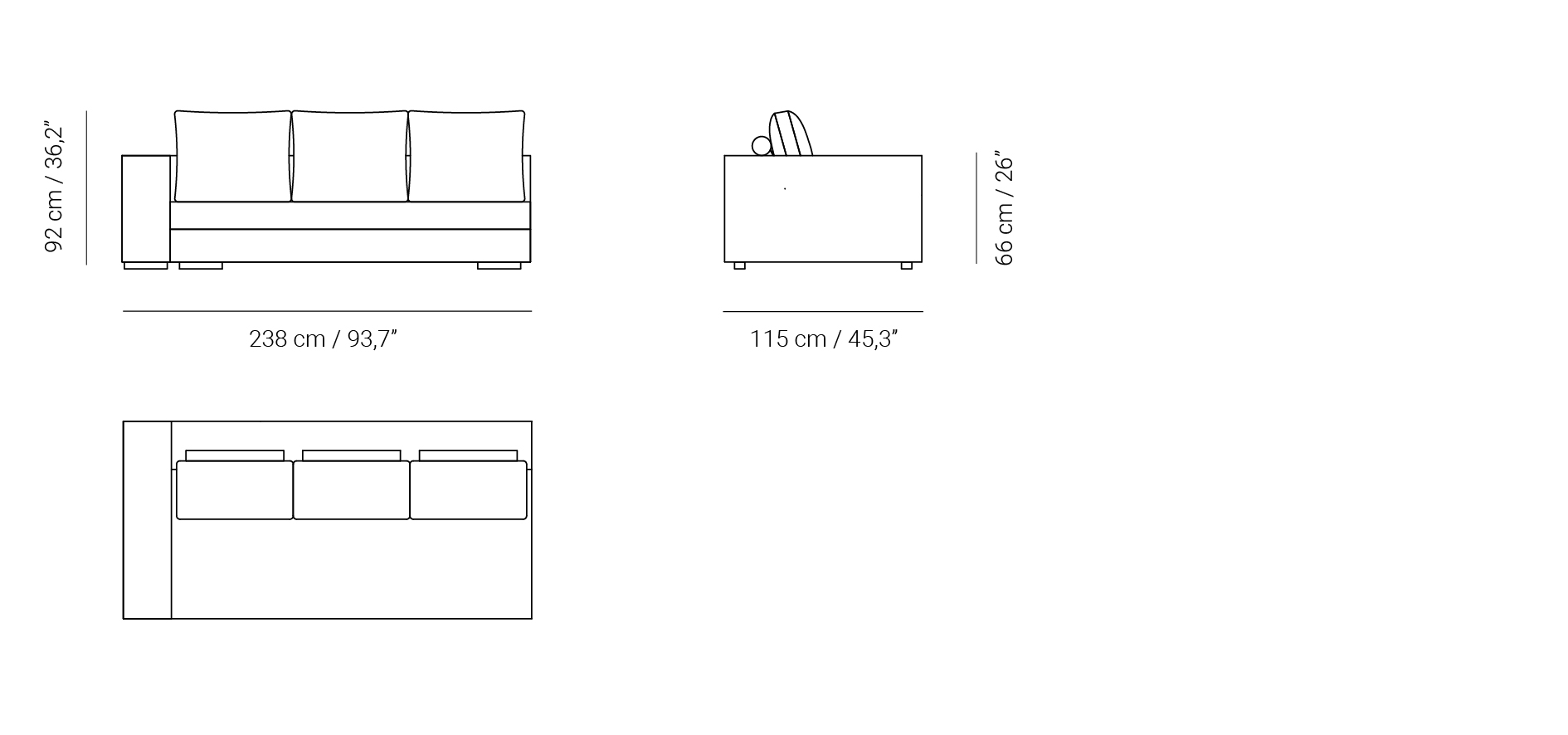 Módulo terminal Prince-238I con brazo izquierdo, ideal para grandes coordinaciones del sofá modular.