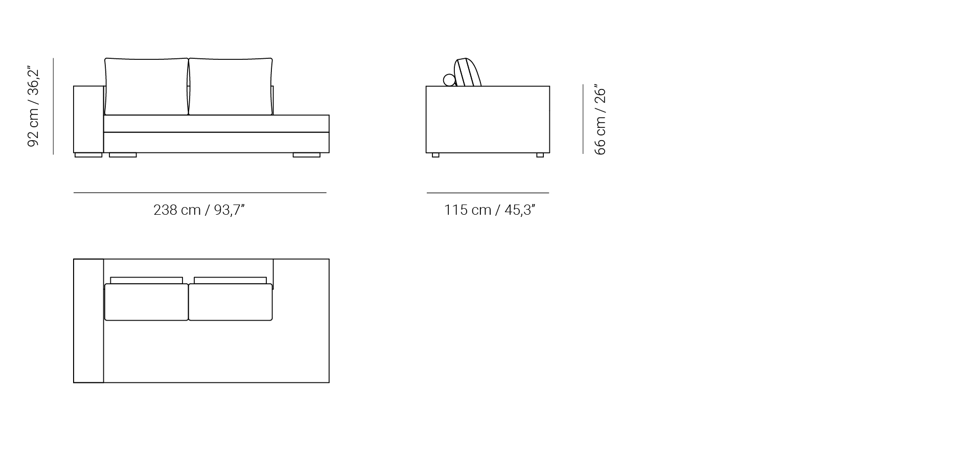 Módulo diván con brazo a la izquierda tamaño XL. Para uso individual o en los conjuntos de sofá modular.
