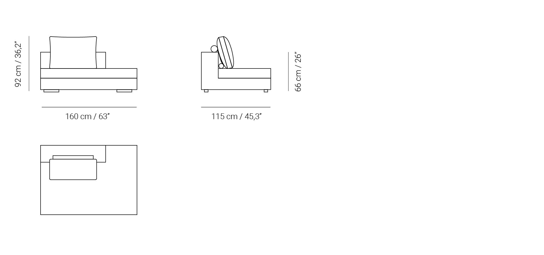 Módulo central Prince-160I con respaldo meridenne izquierda sin brazos.