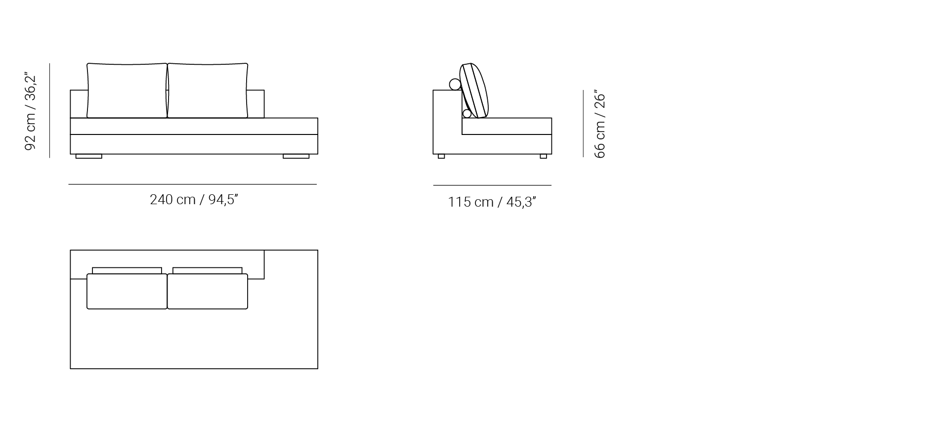 Módulo central 240-I con respaldo meridenne izquierda para composiciones de sofá Prince.